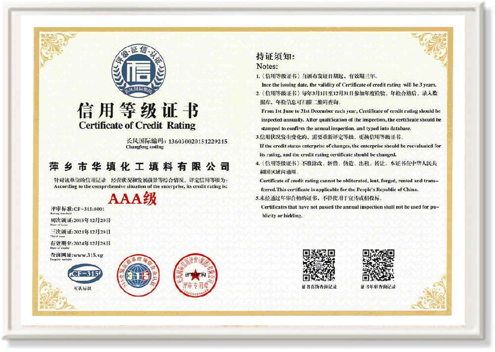 萍鄉(xiāng)市華填化工填料有限公司,位于320國道、109國道、浙贛鐵路、昌金高速公路貫穿其中,交通便利,是江西西部一顆燦爛明珠,創(chuàng)建于20世紀(jì)70年代初期,是中國石油天然氣股份有限公司“能源一號網(wǎng)”會員企業(yè)、中國石化物資采購電子商務(wù)網(wǎng)絡(luò)和中國海洋石油總公司采辦業(yè)務(wù)系統(tǒng)成員單位,是上海大學(xué)江西材料基因組工程產(chǎn)業(yè)研究院工業(yè)陶瓷產(chǎn)業(yè)創(chuàng)新聯(lián)盟基地,且通過ISO9001:2015質(zhì)量管理體系、ISO14001:2015環(huán)境管理體系、ISO45001:2018職業(yè)健康安全管理體系認(rèn)證的化工填料生產(chǎn)企業(yè)。公司擁有陶瓷、塑料、金屬填料、催化劑、活性氧化鋁、分子篩等產(chǎn)品生產(chǎn)線,現(xiàn)有固定資產(chǎn)3616萬元,占地面積3.8萬平方米。公司具有悠久的生產(chǎn)歷史、雄厚的技術(shù)力量和先進(jìn)的生產(chǎn)工藝設(shè)備,可生產(chǎn)工業(yè)瓷球(支撐劑)、陶瓷、金屬、塑料質(zhì)的規(guī)整、散堆化工填料及分子篩、催化劑、生化濾料、活性氧化鋁、石化助劑、活性炭、環(huán)保材料、耐火材料等系列的200多種規(guī)格型號產(chǎn)品。